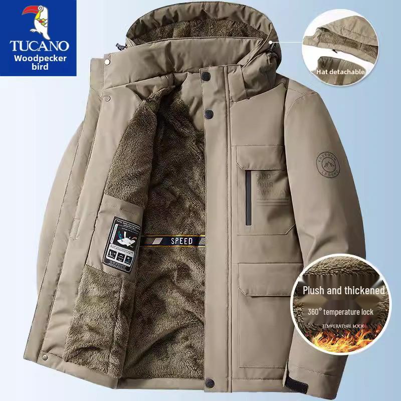 Men's Fleece-Lined Winter Jacket: Thick, Warm, Three-Proof, Cotton-Padded Coat for Middle-Aged & Elderly
