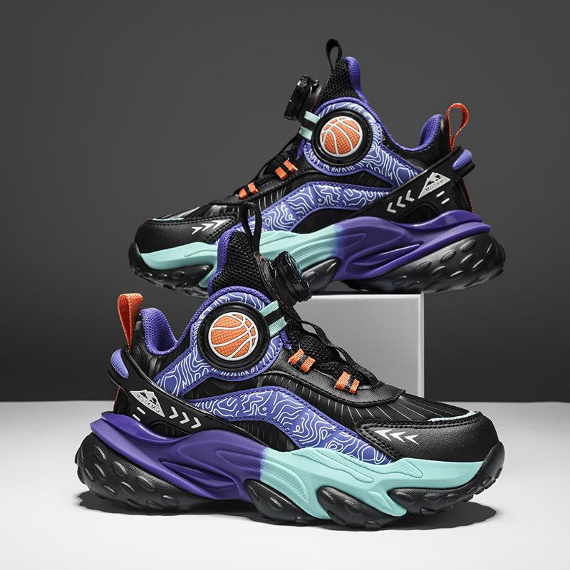 Factory Outdoor Cool Children's Leather Basketball Shoes, Trendy Rotating Buckle Inside, Comfortable Platform Sports Shoes