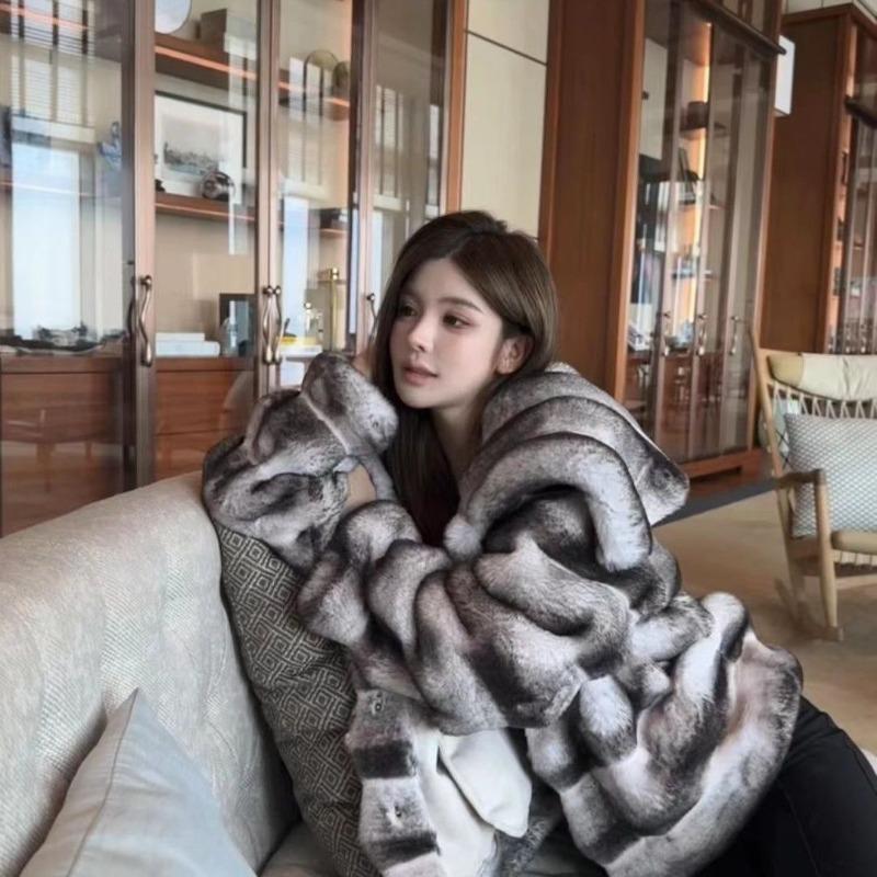 Winter New Chinchilla Short Coat Fashionable Lady Temperament Imitation Rex Rabbit Fur Coat Lapel Fur Woman