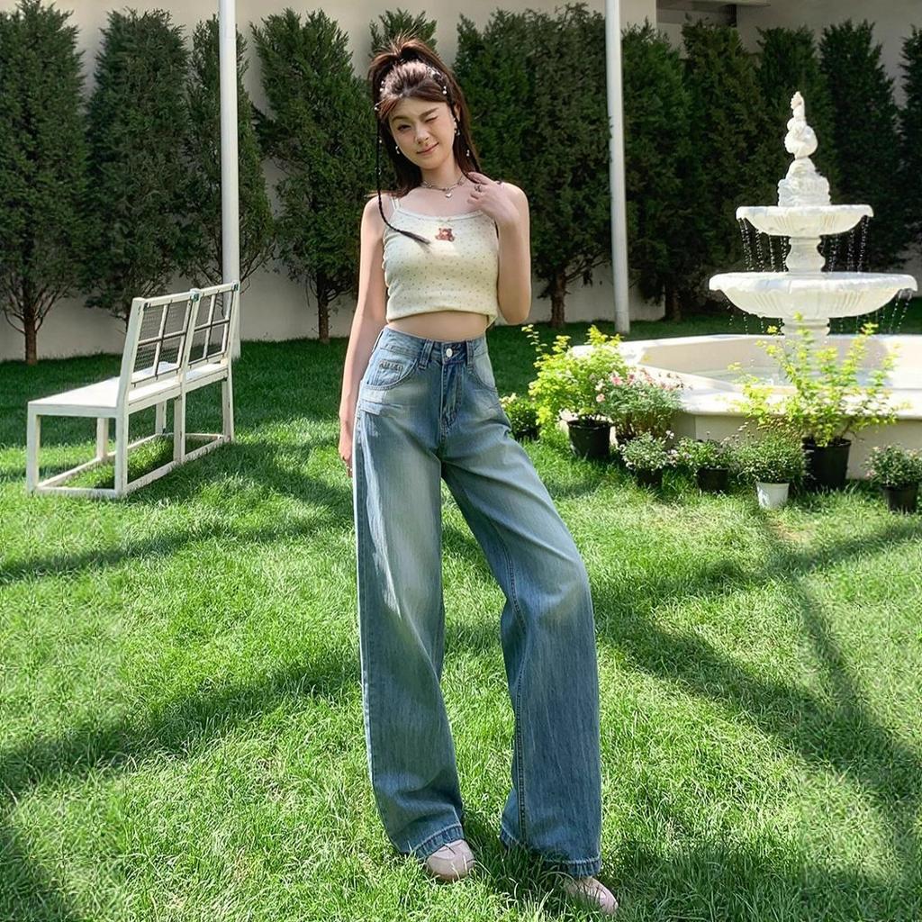 High-waisted Big Yards Wide-legged Jeans Female Summer Thin Section of The Straight Design Sense of Loose Thin Dragged Pants Retro Jeans for Ladies