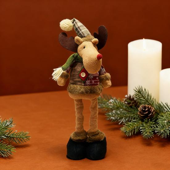 Christmas Plush Doll Plaid Standing Santa Snowman Reindeer Plush Figure with Retractable Legs for Xmas Holiday Party Fireplace Table Decor