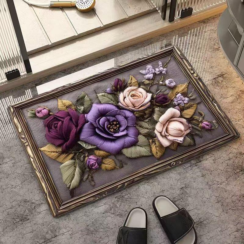 Floral Cross-Border Doormat: Dirt-Resistant, Easy-Clean Doorway Pad for Dust Removal