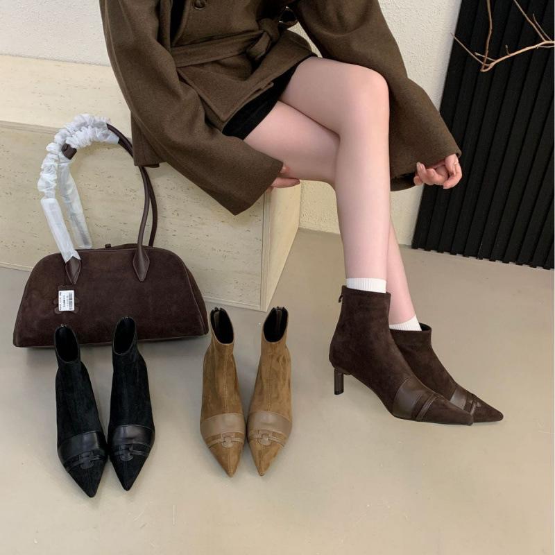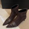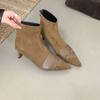 2025 French Suede Splicing Pointed Thin Heel Short Boots Women's Autumn and Winter New Fashionable Versatile Rear Zipper Short Boots