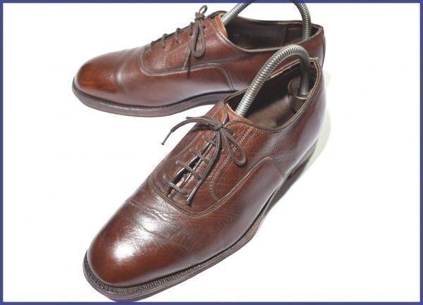 Vintage 70s USA-made Crown Imperial felt tan shoes with a Goodyear weave and genuine leather plain toe. Size 7.5DB (25.0cm) in dark brown. XJ-74.