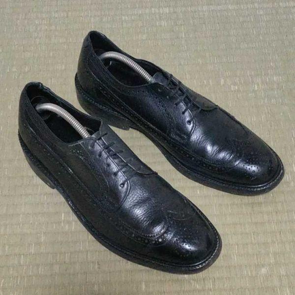 70s-80s USA Vintage [10.5C 27.5-28.0 Black] Goodyear Construction Long Wingtip American Brogue Shoes ★ Felt Tan Kenmool ★ XA9