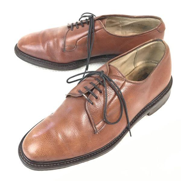 Vintage 80s-90s? Made in England. Vintage Finsbury genuine leather Goodyear construction plain-toe shoes. Brown, size 8.5F, size 27.0, grained finish. bJ-79.