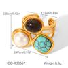 Turquoise Stainless Steel Jewelry Set: Open Ring & Tiger Eye Earrings - Luxurious High-End Look