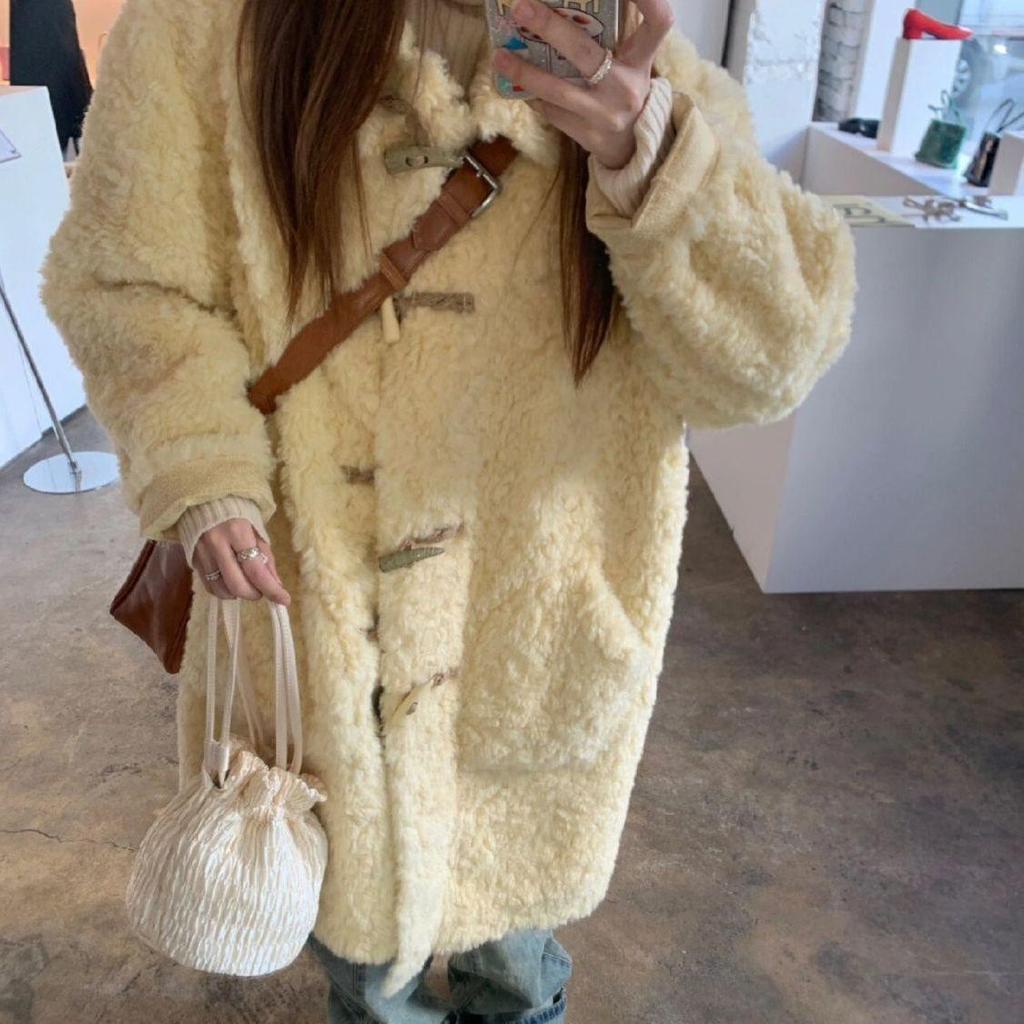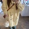 Korean Style Colorblock Faux Fur Toggle Coat for Women (Spring/Summer)