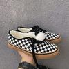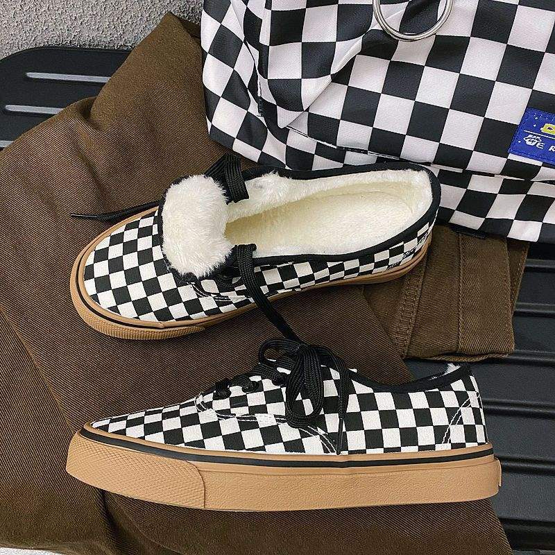 Fleece Black and White Checkerboard Shoes 2025 Winter New Two Cotton Thermal Canvas Shoes Women's Korean Version Couple Board Shoes Men