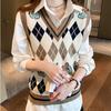 Womens Fashion Print Knitted Vest Sleeveless V Neck Sweater Layering Piece