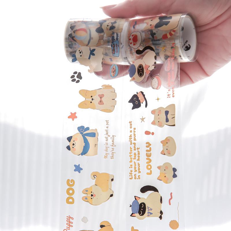 2 Roll Simple Hand Drawn PET Kawill Cat And Dog Diary Series Single Roll Tape DIY Greeting Card Cup Photo Frame Decoration Gift