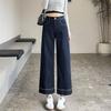 Draped Dark Blue High-waisted Jeans Women's Summer Thin Section Loose Nine-minute Straight Wide-leg Pants Retro Street Style Baggy Jeans for Ladies
