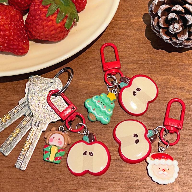 1/5Pcs Christmas Cute Red Apple Keychain Girls Cartoon Bag Pendant Car Keyring Funny Backpack Accessory For Best Friend Gift