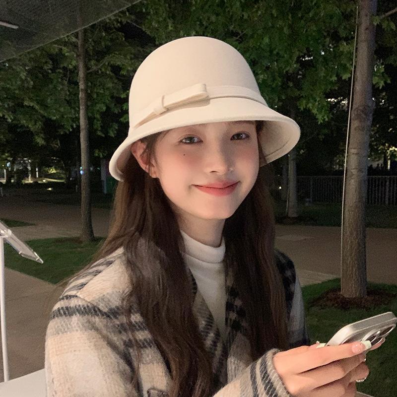 Autumn and Winter Bow Fashion Hat Hepburn Style Australian Wool Fisherman Hat French Retro Small Fragrance Elegant Top Hat