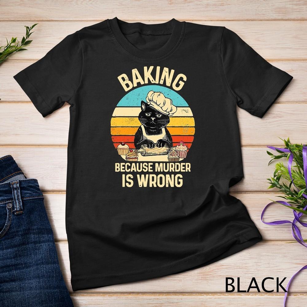 Vintage Retro Cat Baking Because Murder Is Wrong T-Shirt Unisex T-shirt