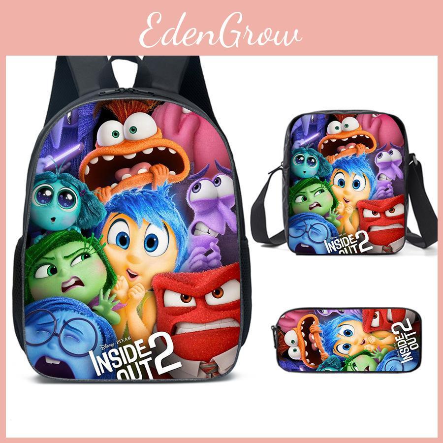 This set includes a 17-inch school backpack, a crossbody bag, and a pencil case, all featuring colorful "Inside Out" cartoon patterns. Made of durable Oxford cloth with polyester lining, the lightweight design offers breathable comfort and ample storage. Ideal for school use, it supports daily organization. Wipe clean with a damp cloth for maintenance.