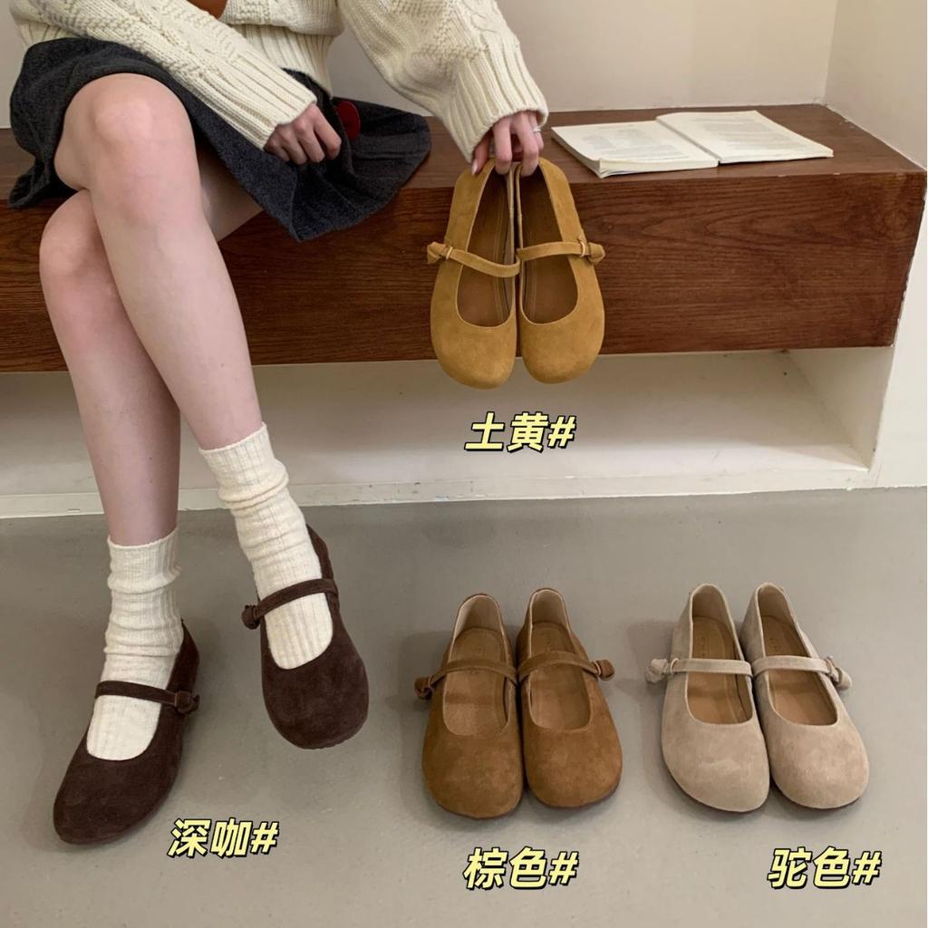 2025 New Round Head Leather Matte Shallow Mouth Versatile Word with Soft Skin Doudou Pregnant Women's Single Shoes
