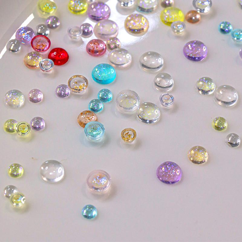 200Pcs Colorful Mermaid Bubble Bead Nail Art Accessories Flat Candy Colored Semi-Circular Diamond Nail Decoration