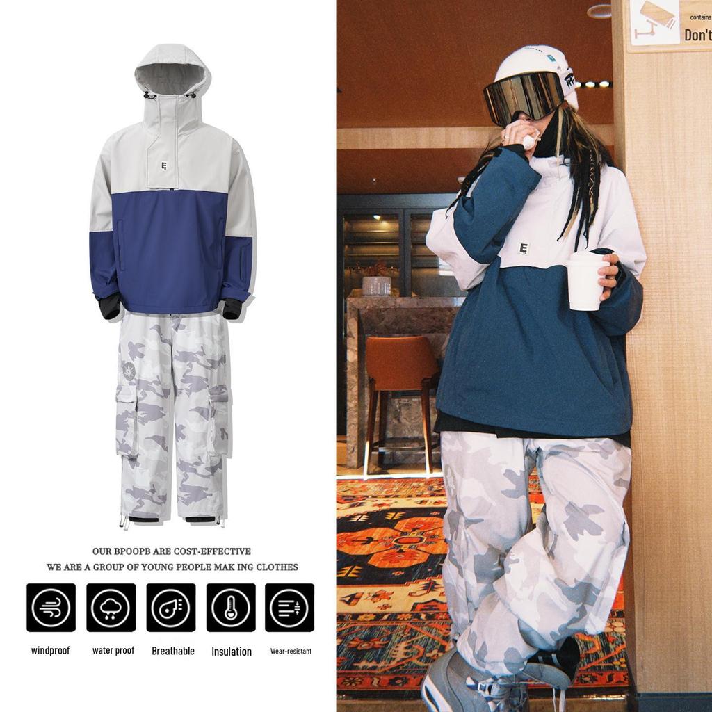 Unisex Camouflage Fleece-Lined Waterproof Ski Suit - Two-Piece Windproof Set