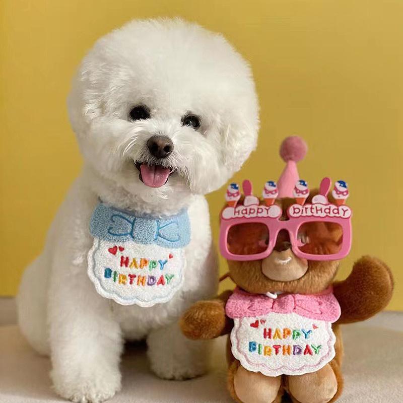 1set Mini Doggy Adjustable Bandana Scarf Lovely Pet Cat Dog Birth Bib and Party Hat Birthday Outfit Puppy Birthday Party Supply