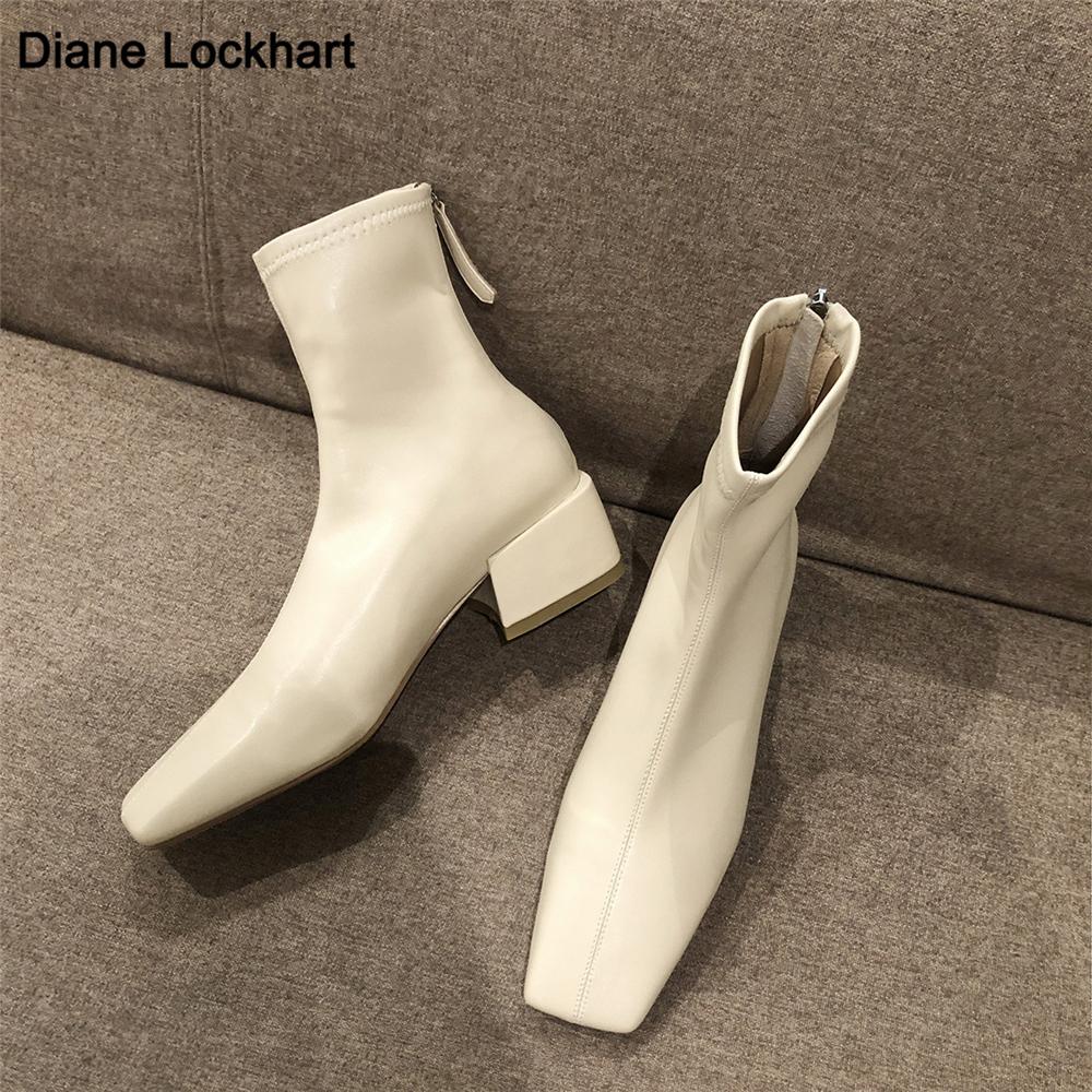Autumn Winter Fashion Women Boots Square Toe Yarn Elastic Ankle Boots Kid Suede Thick Heel Shoes Female Socks Boats Mujer