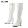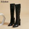 Eilyken Fashion Women Knee High Motorcycle Boots Sexy Pointed Toe Square Heels Long Zipper Female Botas De Mujer Largas