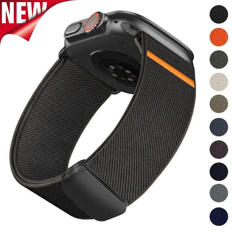 Magnetic Nylon Loop Strap Elastic Bracelet for Apple Watch Ultra 3 49mm Iwatch Series 11 10 9 8 7 6 SE 5 4 46mm 45mm 44mm 42mm