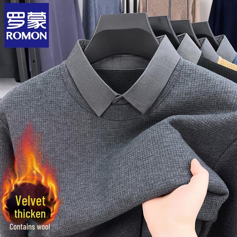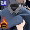 Luo Meng Men's Faux Two-Piece Thermal Shirt Collar Knit Sweater