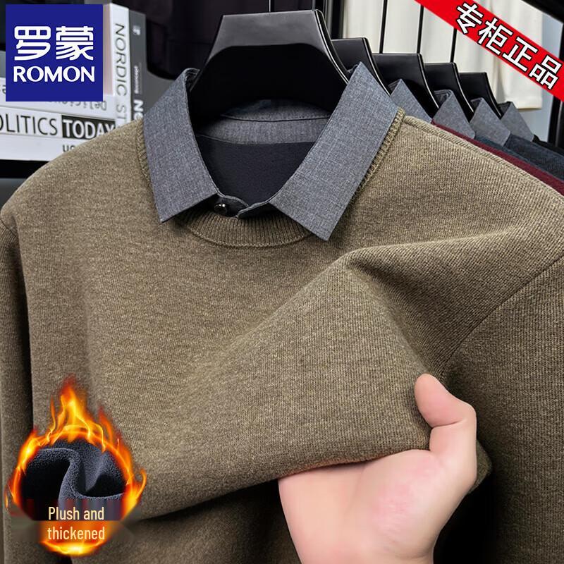 ROMON Men's Faux Two-Piece Knit Lapel Sweater