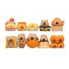 This collection features ten food-themed plush capybarafigurines crafted from durable PVC and resin. These charming cartoon-style ornaments are ideal for car decor, desktop displays, or as creative gifts. Suitable for birthdays, holidays, or special occasions, they add a playful touch to any setting. Wipe clean with a damp cloth to maintain their vibrant appearance.