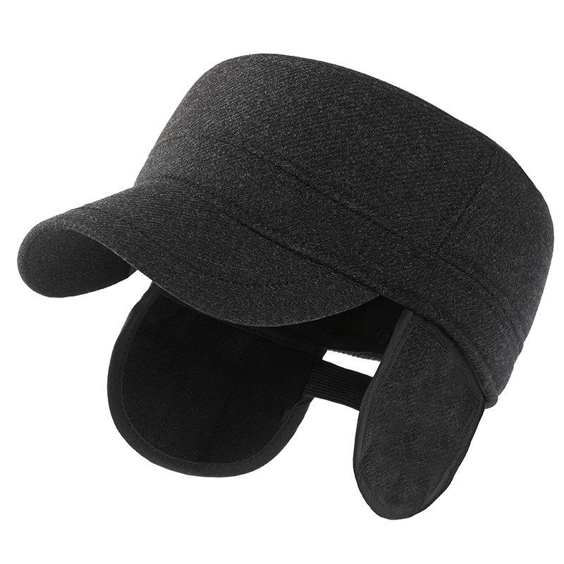 Plus Size Winter Flat Top Baseball Cap with Ear Protection for Men and Grandpa