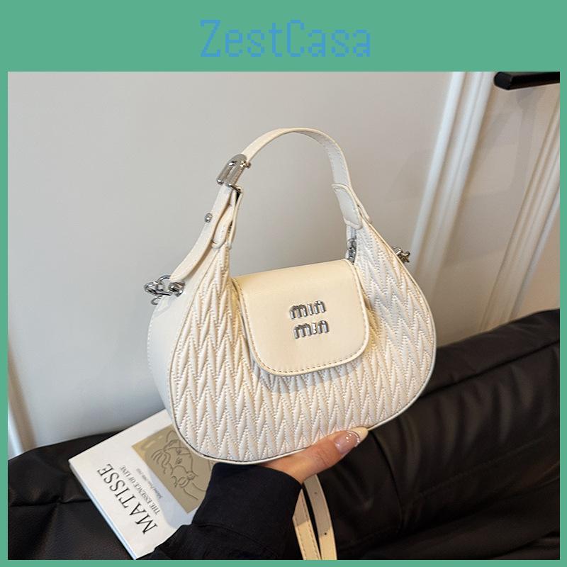 This fashion crescent-shaped handbag features a minimalist design with stylish pleats and visible stitching, crafted from durable PU material.it combines elegance with practicality for daily use. The soft, lightweight construction includes a zippered closure and internal zippered pocket, ideal for urban outings. Wipe clean with a damp cloth to maintain its appearance.
