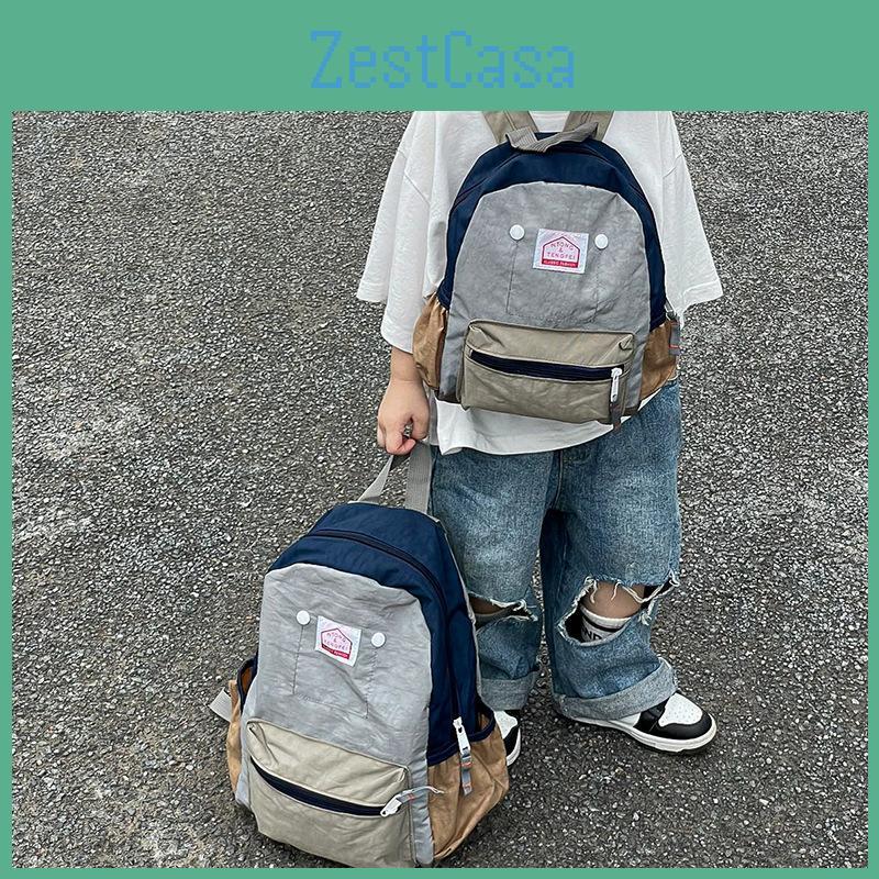 Canvas Blocked Color Backpack With Nylon Simple For Children Backpack Spine