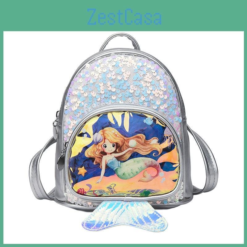 Glitter Mermaid With Small Tail Childrens Backpack Adjustable Straps Shoulder
