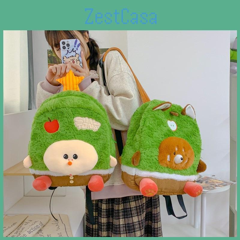 Bear Pattern Sheep Plush Backpack Breathable Shoulder Schoolbag Straps