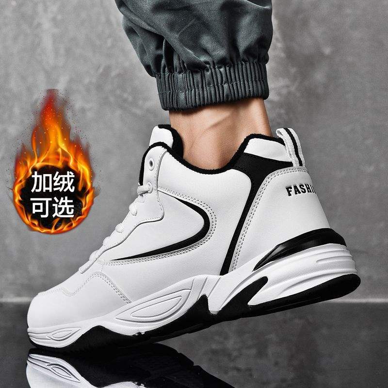 Winter Men's Shoes Sports Leather Waterproof Cotton Shoes Men's Warm and Velvet Travel Casual Shoes Black Running