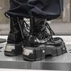Martin Boots Men's High-top British Style Thick-soled Heightened Bright Leather Black Locomotive Boots Round Head Side Zipper Punk Boots Men