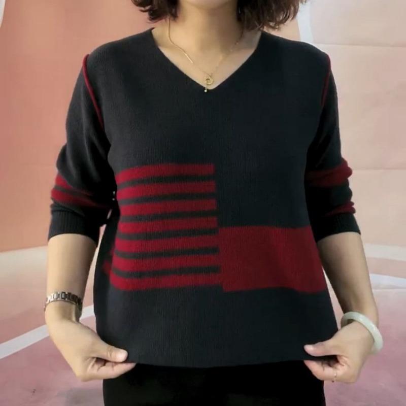 Autumn and Winter Color-blocked Sweaters V-neck Sweaters Stylish Commuter Bottoming Shirts Women's Tops