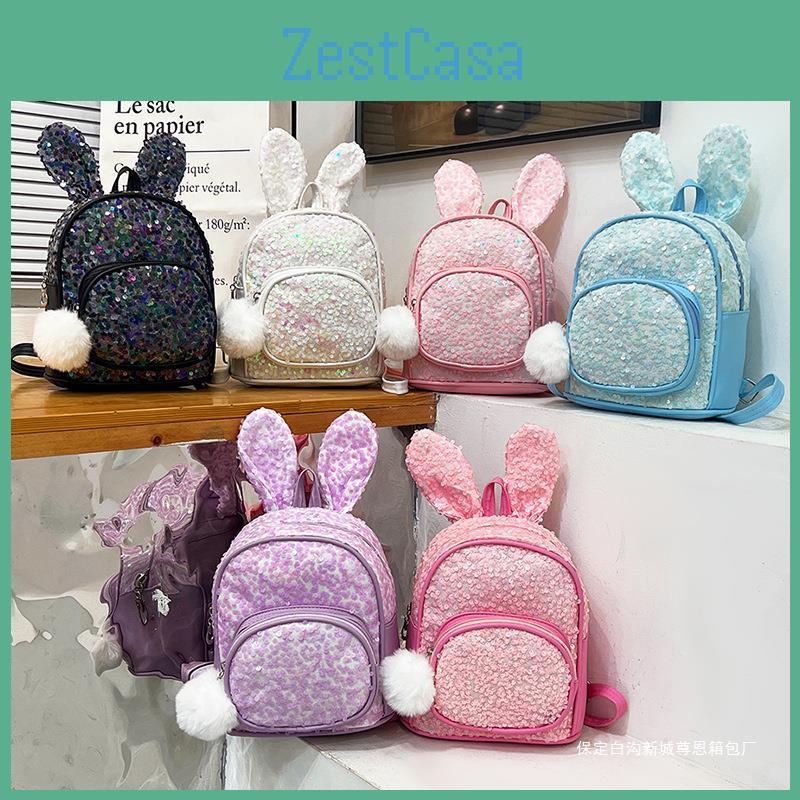 Cute Sequined Rabbit Ear Backpack Pu Material Suitable For Childrens Life Daily