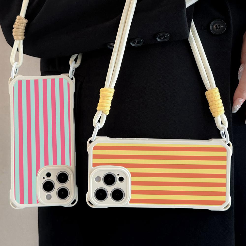 Colorful Striped INS Couple For Iphone 17 16 15 14 12 Phone Cases Four Corner Anti Fall Chain Case Lens Protection Shockproof