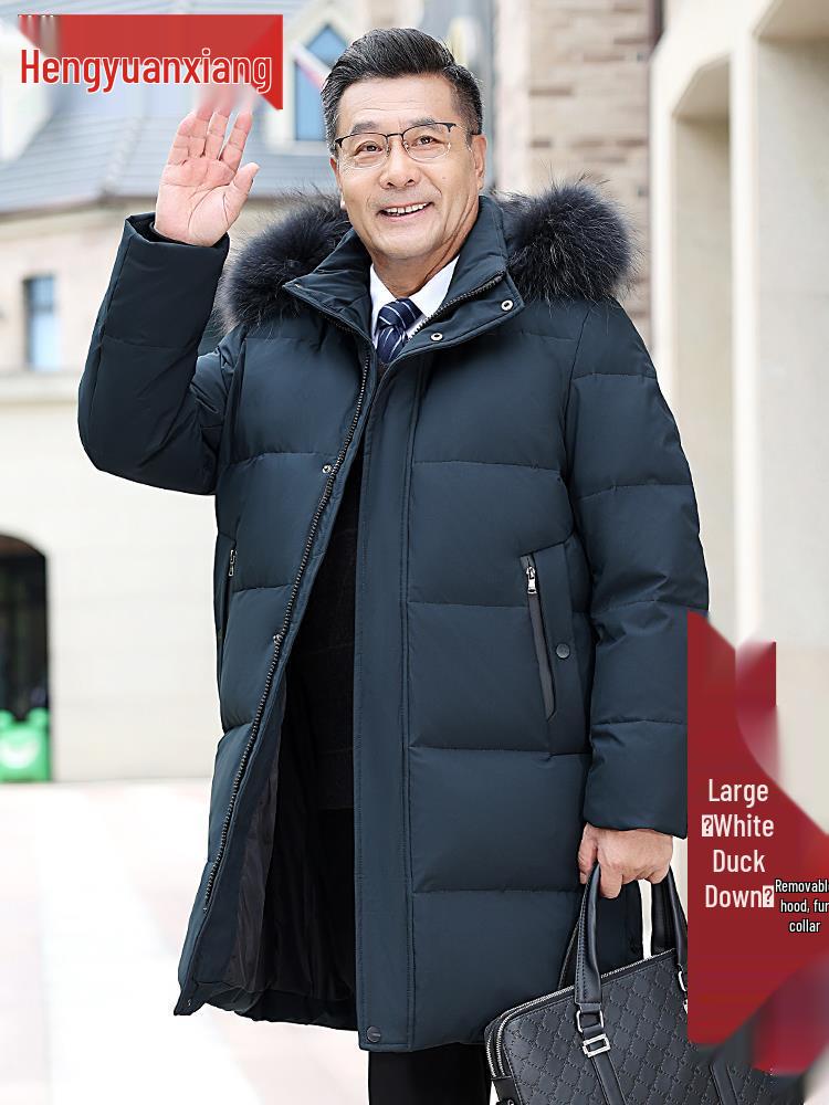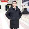 Stay warm and stylish during the colder months with this insulated mid-length down jacket, specifically designed for middle-aged and elderly men. Filled with premium duck down, this jacket provides exceptional warmth and cold-proof protection. The solid pattern adds a touch of timeless elegance, while the use of polypropylene material ensures durability and comfort. The jacket is available in plus sizes, offering a comfortable fit for everyone and making it an ideal choice for winter wear.