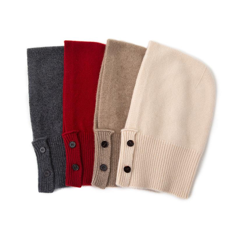Cashmere Autumn and Winter New Solid Color Scarf Integrated Hat Cycling Warm Ear Protection Cap Knitted Hat