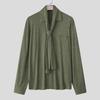 INCERUN Spring Men Tie-up Long Sleeve Casual Loose Oversized Pullover T-shirts Tops