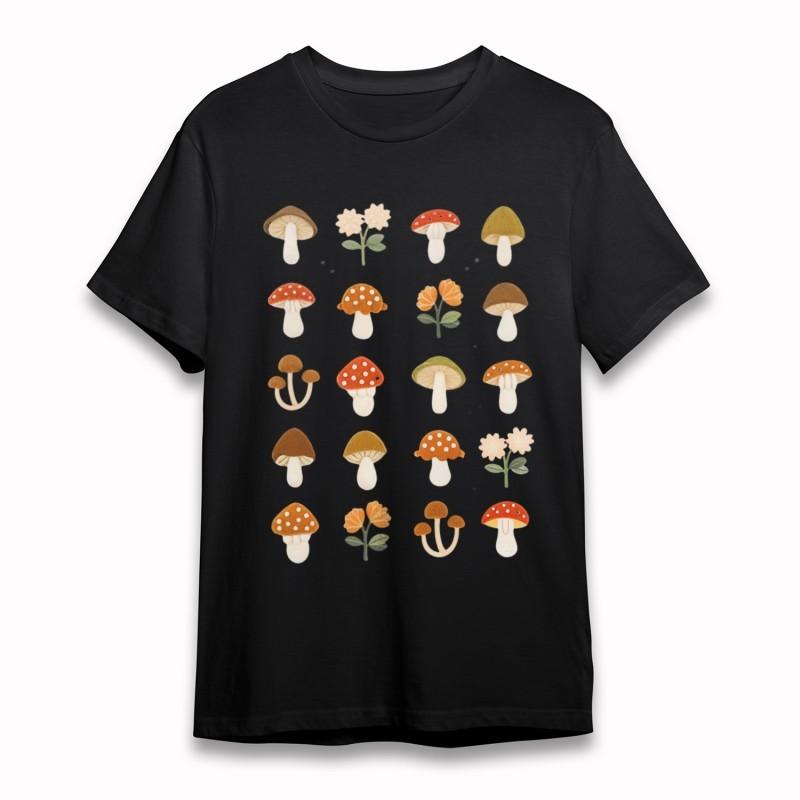 Women's Plus Size Classic T-Shirt Whimsical Red Yellow Forest Fungi Print Tee
