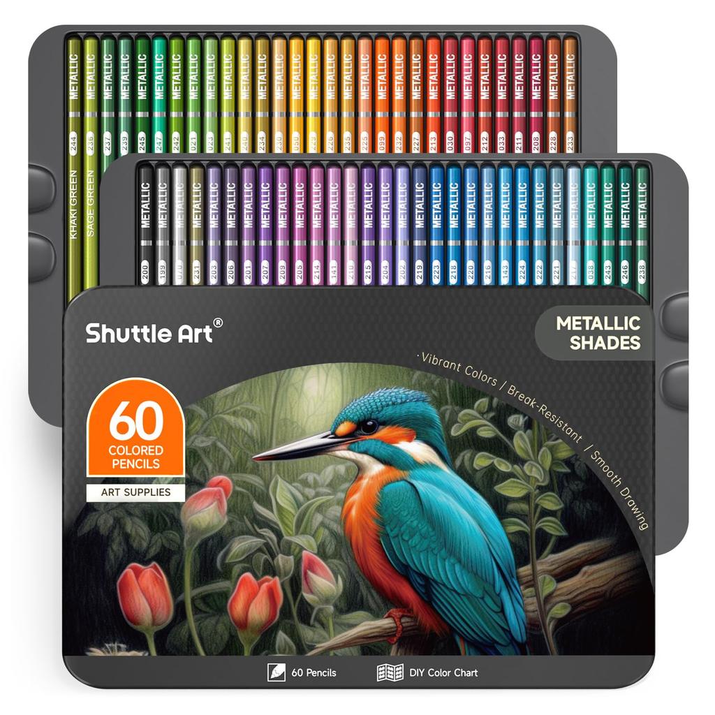 Shuttle Art Colored Glitter Pens for Adult Coloring Metallic Includes Tin Case and Color Chart for Easy Black Perfect for and Perfect Gift for