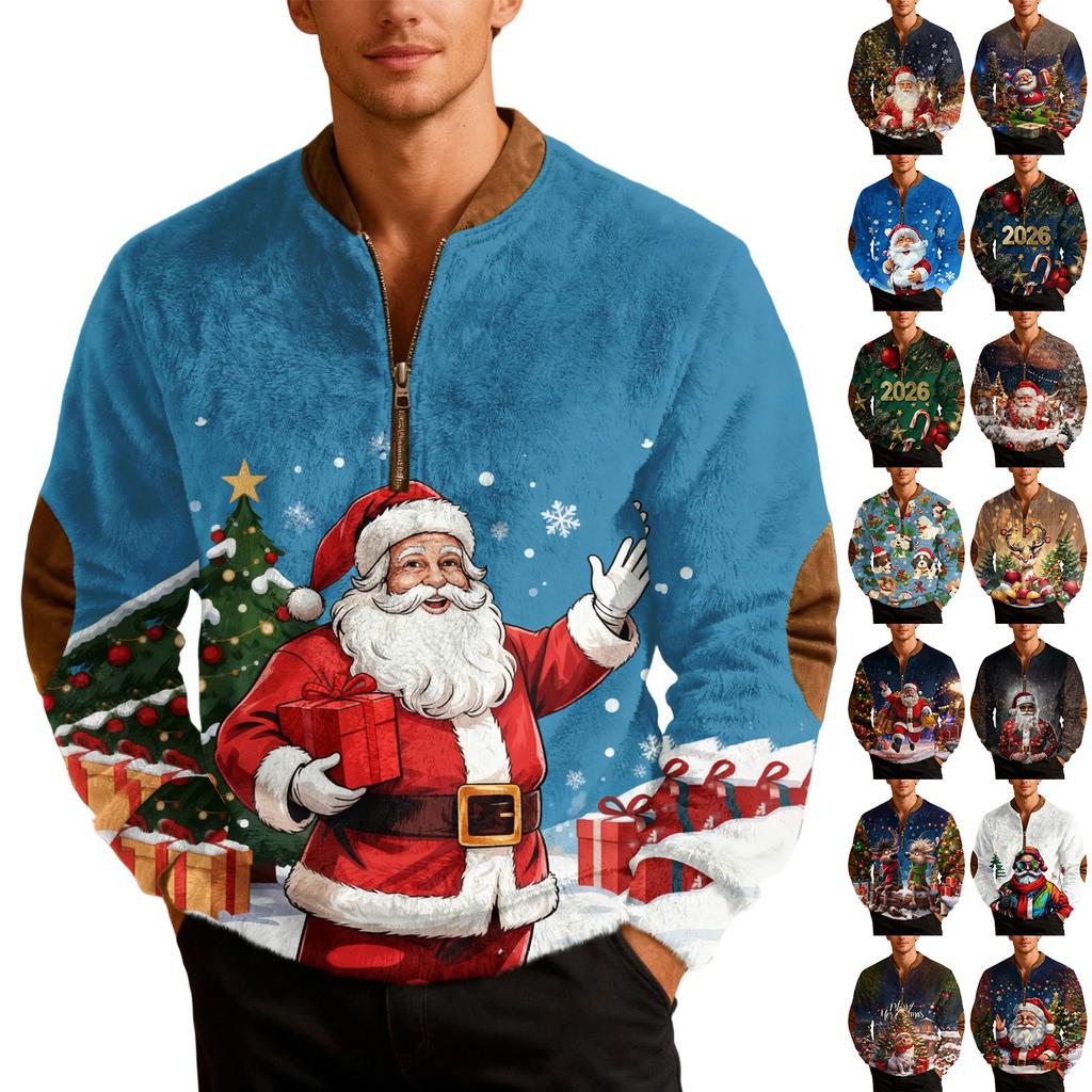 Mens Christmas Sweater Zip Up Sweatshirts Vintage Knit Graphic Sweatshirt Xmas Stand Collar Pullover