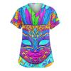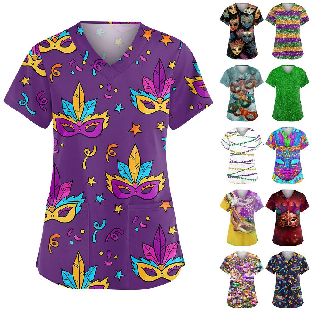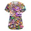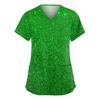 Women's Fashionable V-neck Workwear Printed Short Sleeved Pocket Side Slit Workwear Basic Pullover Top