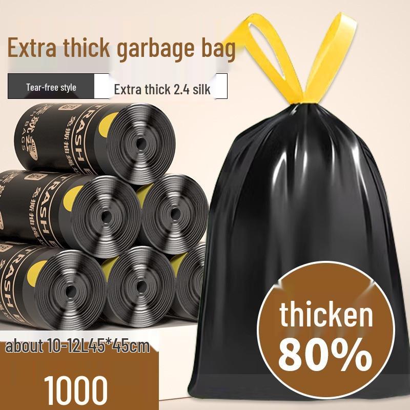 Extra Thick Tear-Free Black Drawstring Garbage Bags for Bathroom, Portable and Durable