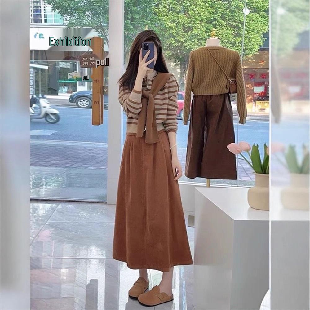 Step into the new season with this stylish and trendy early autumn skirt set, designed specifically for women who appreciate both fashion and comfort. Crafted entirely from high-quality polyester, this outfit features a luxurious fur-like texture that adds an elegant touch to your fall wardrobe. Perfect for those crisp autumn days, this ensemble effortlessly combines modern style with classic sophistication, making it an ideal choice for any occasion.