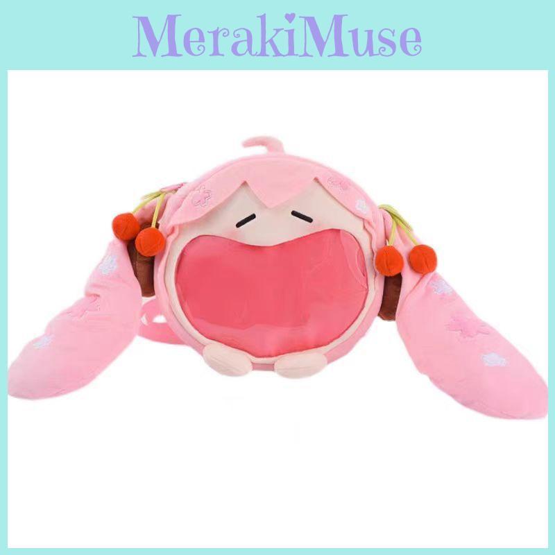 Hatsune Itabag Pink Plush Tote Backpack Floral Design Outings Girls